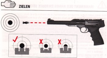 Auf dem Schießstand Die “Browning Buck Mark URX” erwies sich bei den Testdurchgängen als eine sehr ansprechende Freizeitpistole die sich durch angenehmes Handling und leichte Bedienbarkeit auszeichnet. Der mit Fingermulden ausgeprägte und mit angerauhten Flächen ausgestattete Griff liegt sehr gut in der Hand und bietet mit seiner gummiartigen Oberfläche eine sehr angenehme Haptik. Die knapp über 700 g wiegende Pistole lässt sich - bei leichter Vorderlastigkeit - auch von körperlich schwächeren Anwendern ruhig im Anschlag halten. Der Spannvorgang ist angenehm leichtgängig und macht die Waffe auch für jugendliche (gesetztliche Regelungen beachten) und/oder weibliche Schützen gut bedienbar. Das liegt an der nicht übermäßig starken Systemfeder, die den Spannvorgang nicht zu einer Kraftsportangelegenheit verkommen lässt. Auch nach über 50 Spannvorgängen zittern dem Schützen nicht die Hände, wenn er die Waffe am ausgestreckten Arm im Anschlag hält.