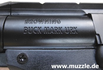 Hersteller: - nicht bekannt - Anbieter: UMAREX GmbH & Co. KG Modell: Browning Buck Mark URX Vorbild: Browning Buck Mark URX (Ultragrip RX), cal. .22 long, Mag.-Kapaz. 10 Schuss Markings: Originale “Browning”-Beschriftung aufgrund Lizenzvertrag Serien-Nr.: 12J89937