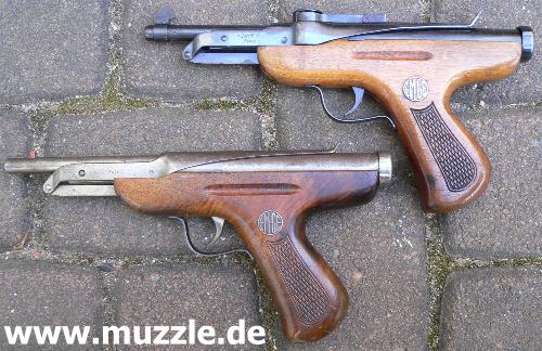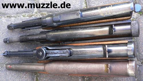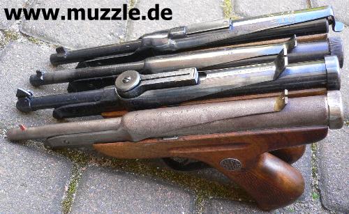 Vergleich von Waffen mit “Zenit”-System Bild unten, von oben: “EM-GE Zenit M”, “GM Zenit” (“Brema Mod.5”) mit schwarzem Kunststoffgriffstück, “Milbro Mark IV”