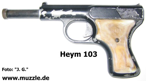 Der Traditionshersteller F. W. Heym, gegründet 1865 in Suhl, nach dem 2. WK ansässig in Münnerstadt, baute neben der hier vorgestellten einfachen Luftpistole Mod. 103 auch zwei Luftgewehrmodelle unter den Modellbezeichnungen “LG101” und “LG102”.