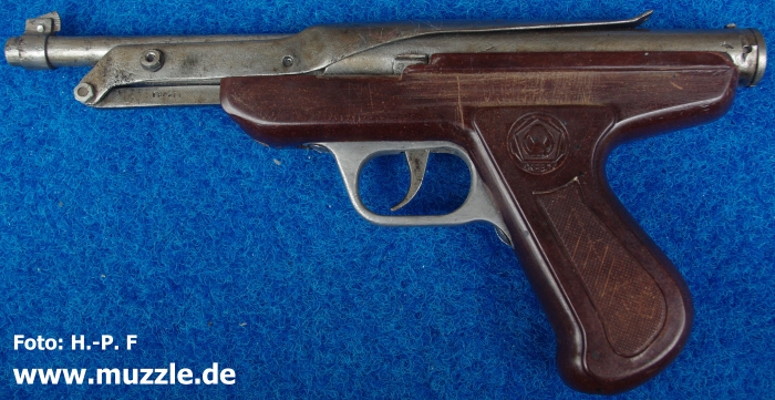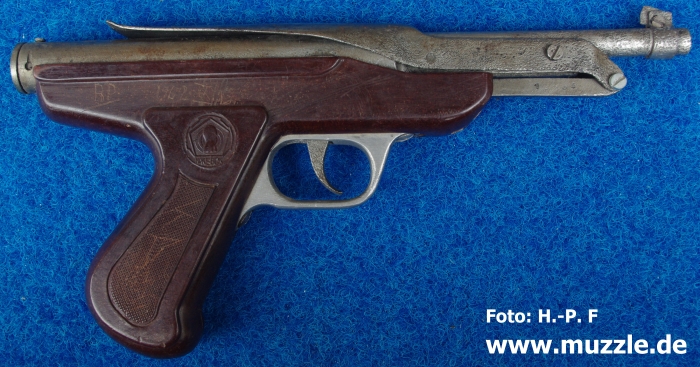 Aber das ist auch schon alles, was mir aktuell über dieses Exemplar bekannt ist. Ich hatte zwar schon einmal die Abbildung einer “Zenit”-Kopie russischer Herkunft gesehen, jedoch hatte das Belegstück ein schwarzes Griffstück und - soweit ich mich erinnere - keine entsprechende Beschriftung auf dem Griff Vergleiche: http://www.muzzle.de/N3/Druckluft/GM__Zenit_/gm__zenit_.html http://www.muzzle.de/N7/Druckluft/EM-GE_Zenit/em-ge_zenit.html