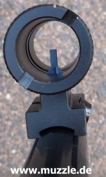Arretierung. Sie verhindert zuverlässig ein Abkippen beim Schuss.