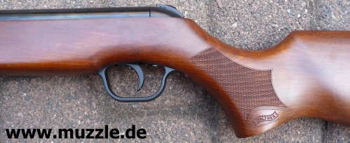 den butterweilen Lauf der Mechanik. Natürlich muss man einige Kraft aufwenden um die Feder zu spannen, aber man verspürt ansonsten keinerlei Knirschen, Knarzen oder Schaben. Das Gewehr liegt bequem im
