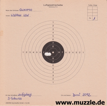sprechen für sich. Vorallem wenn man bedenkt, dass ich wahrlich nicht der geübte Langwaffenschütze bin und mit dem “LGV” gerade mal den ersten Kontakt aufgenommen hatte. Die 10-m-Schussbilder entstanden