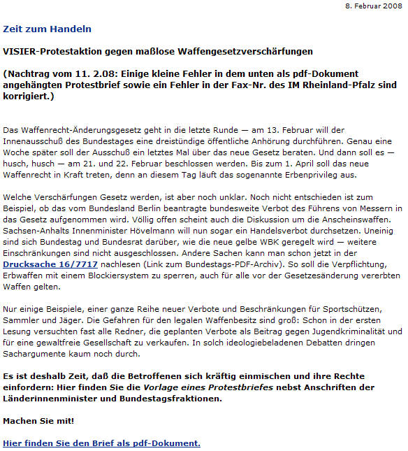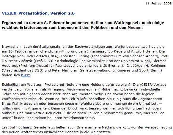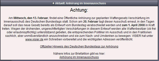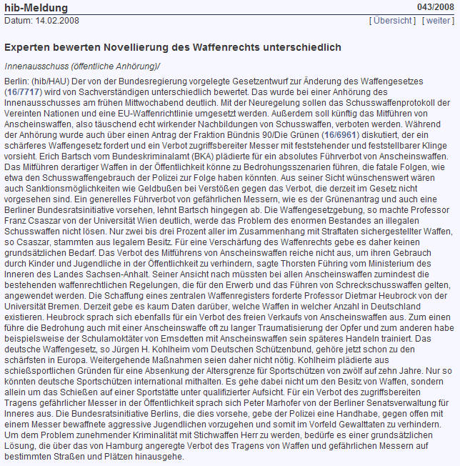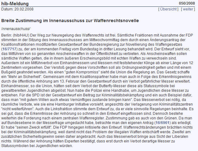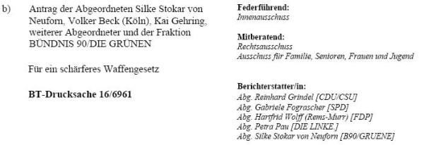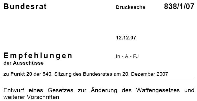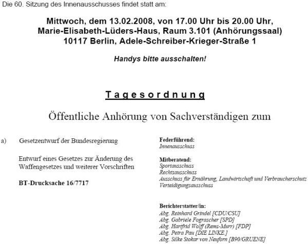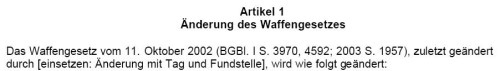Die abschließende Beratung zur Novelle des Waffengesetzes ist für den 21./22. Februar im Deutschen Bundestag und für den 14. März im Bundesrat vorgesehen. (Zitat Ende)