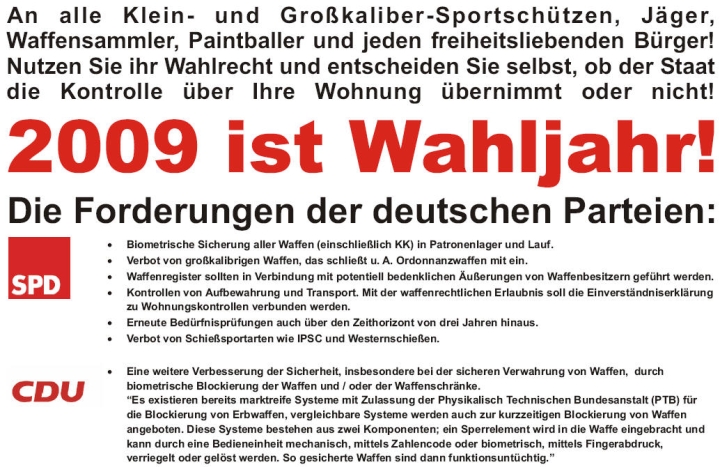 Nach dem schrecklichen Amoklauf von Winnenden (Rems-Murr-Kreis), bei dem am 11.3.2009 ein 17-jähriger Jugendlicher 15 Menschen und am Ende sich selbst mit der Pistole seines Vaters tötete, begannen sofort wieder die reflexartig und meist aus rein ideologischen Beweggründen vorgetragenen Politiker-Rufe nach der Verschärfung des deutschen Waffenrechts. Das alles natürlich durch wenig Sachkenntnis “getrübt”.