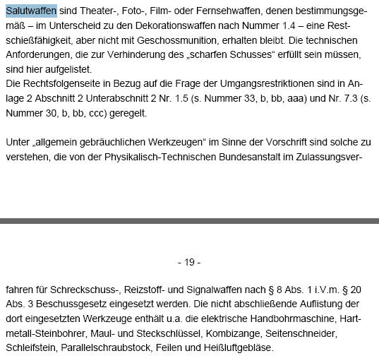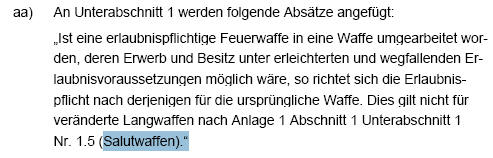 Die sogenannten “Salutwaffen” werden explizit gesondert behandelt: