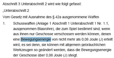 Spielzeugwaffennachbildungen und Bewegungsenergiegrenze für Spielzeug:
