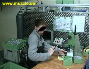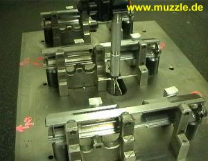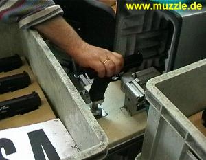 so ist die Einheit definitiv dicht. Nach kompletter Montage wird jede Waffe in eingespanntem Zustand probegeschossen (Bilder unten). Dazu bedient man sich bereits vorgeladener Magazintrommeln, die ebenfalls