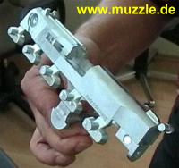 vorgegebenen äußeren Maße, die wesentlich umfangreichere Technik einer CO2-Waffe zu implementieren. Herr Emde und ein Mitarbeiter der UMAREX-Kreativ-Abteilung führten einen solchen Vorgang mittels dieses