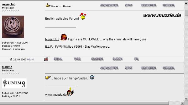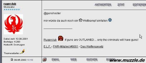 Der erste Thread (siehe Hinweis oben von “Old_Surehand) im damals “neuen” Forum wurde von “rugerclub”
