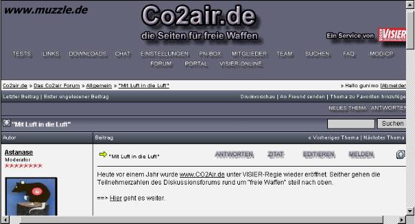 “Visier”-Online eine entsprechende Meldung zu veröffentlichen. Den Hinweis darauf im “co2air”-Board nutzt er dazu, den Administratoren und Moderatoren für ihre ehrenamtliche Tätigkeit zu danken: