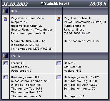 Am 30.10.2003 publiziert der Administrator “Old_Surehand” im Dauerbrenner-Thread “Registrierungen” den aktuellen Stand seiner bewährten