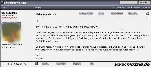 Am 16.10.2003 wird das Fieldtarget-Forum in der Forenstruktur gesondert ausgewiesen: