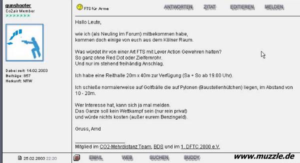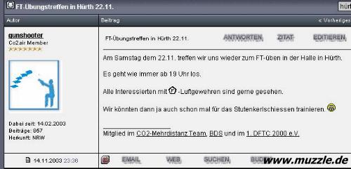 Im Februar 2003 erfolgt der erste Aufruf zu einem privaten Treffen in Hürth. Dabei lädt “gunshooter” zu einer