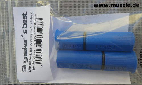 Nineshot .68 Ladehülsen (Schrothülsen) für das CO2-Shotgun “T4E HDS 68” von UMAREX. (Fotos unten). “T4E” steht für “Training For Engagement”, “HDS” für “Home Defense Series”.