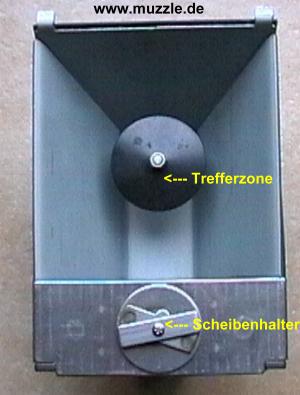 Bei diesem Schießspiel für Luftpistole und Luftgewehr wird bei einem Treffer auf die Zielmarkierung (Scheibe in