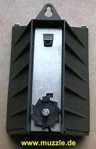 Rastung einhakt. Nun ist die nächste Scheibe auf der Voderseite des Kastens vor die Trefferzone rotiert und ein Drehvorgang abgeschlossen. Dieser Ablauf wiederholt sich 10 mal, dann sind alle Ziele weitergedreht und