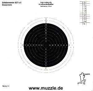 Bild unten rechts: Internationale Armbrustscheibe für 30 m Distanz (Schützenverein 1927 e.V. Dossenheim),