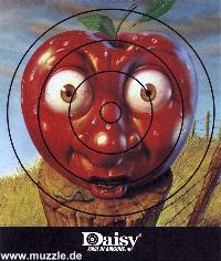 “Daisy”-Fun-Zielscheiben: Apfel, Dose, Baum. Außendurchmesser der Scheibe = 110 mm.