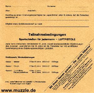 Unten rechts, Rückseite: Teilnahmebedingungen am “Sportschießen für jedermann - Luftpistole”